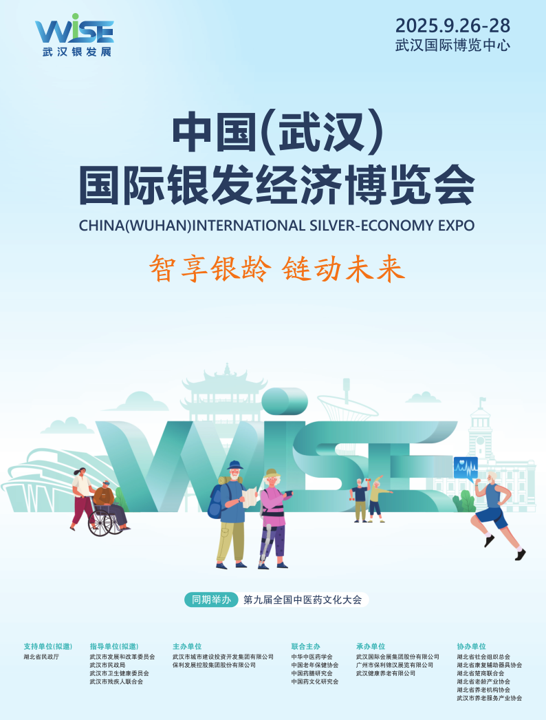 为进一步释放会展经济的集聚带动效应,推动产业协同创新,助力增进民生福祉,首届中国(武汉)国际银发经济博览会(以下简称“WISE银发展”)应运而生。本届博览会将于9月26日至28日在武汉国际博览中心盛大举行,展览规模预计达2万平方米,参展商预计突破300家,全力打造成为中部地区规模z大、影响力z强的专业银发展会。
