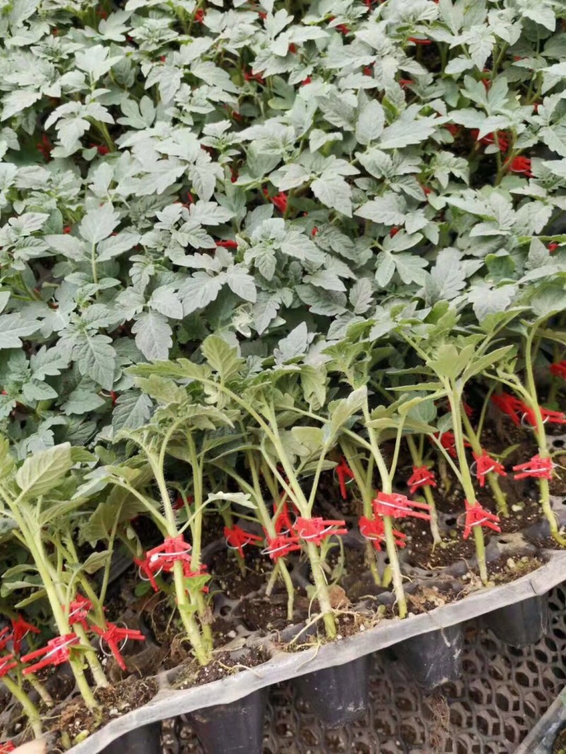 嫁接西红柿苗可以有效防止重茬地带来的土传病害,抗死颗,提供产量,嫁接西红柿的根系发达,分布广而深,发根力很强,导航部也易生不定根,移栽容易。