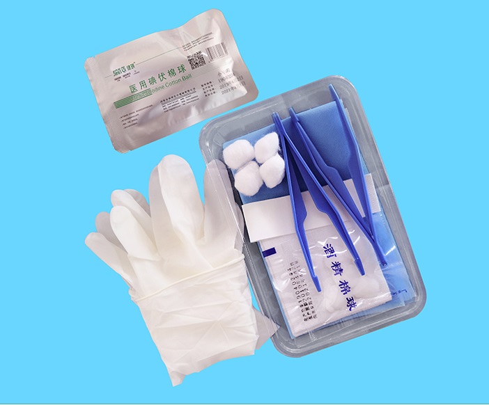 【结构与组成】I型产品由基本配置和选用配置组成;基本配置:一次性使用治疗巾、医用棉球;选用配置:医用脱脂纱布块、一次性使用孔巾、一次性使用中单、一次性使用灭菌橡胶外科手套、一次性使用医用橡胶检查手套、PE检查手套、医用外科口罩、一次性使用医用口罩、一次性使用帽子、一次性使用手术衣、一次性医用垫、医用脱脂纱布垫、医用碘伏棉签、医用碘伏棉球、医用酒精棉签、医用酒精棉球、医用棉签、自粘式伤口护贴、壳聚糖敷料、医用输液贴、一次性使用吸引连接管、医用镊、非织造布敷料块、包布、托盘。