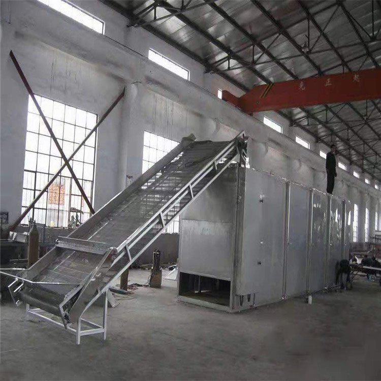 湿物料通过提升机均匀铺在首层网带上,随网带缓慢移动,厚度控制在5-25cm。