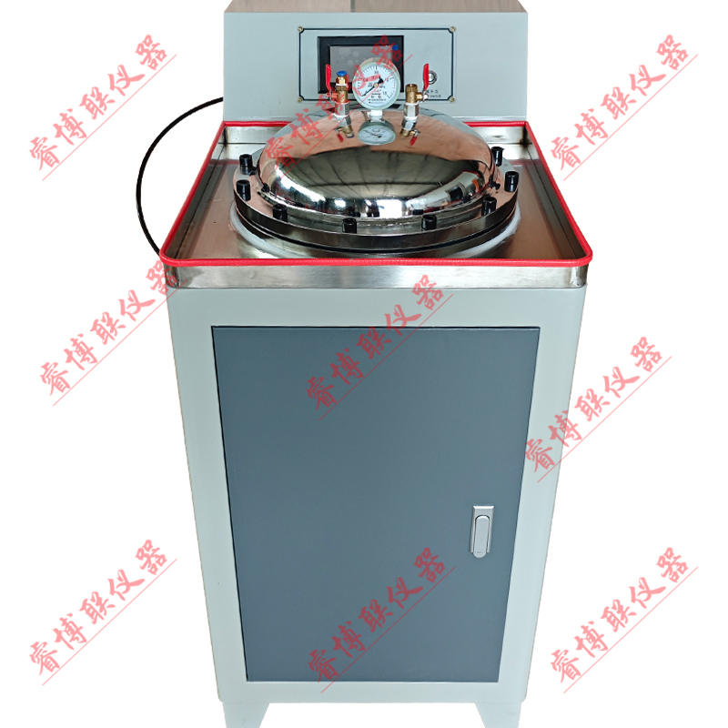 (2) 使用时,把三个透水盘的压圈松开卸下, 把注水口的盖拧开, 再把放水阀关严, 从注水口慢慢注入清水,待透水盘中间的进水孔冒出水来, 把被测试件放在透水盘胶圈上,再把接缝不透水性盖板放在被测试件上,压好试件,启动即可。