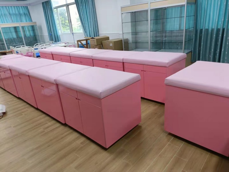 婴儿护理软包台台面外包全新人造皮革,内置加厚海绵,面层8-10CM。柔软舒适安全,并且防水防尿无异味,不易变形,光滑使用寿命长等优点,海绵制作,柜门采用烤漆木板,具有环保、耐腐蚀、易清洁等特点。