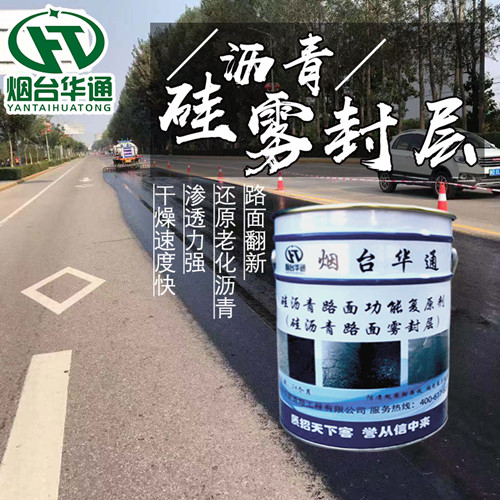 华通沥青养护剂是通过在材料中添加,具有复合活性成分的有机硅聚合物和芳香族化合物,以及经过处理过的硬质沥青基材料和拥有自主知识产权的特殊的表面活性剂,其表面活性成分大幅降低了硅沥青的表面张力,增强了材料自身的渗透性以及与原沥青组分的相容性,使硅沥青直接浸润到沥青材料的内部以及裹附集料的沥青油膜之中,进而充分发挥材料密封、粘结、还原的作用。华通沥青养护剂施工采用喷涂式施工方法,喷洒前要先将路面清理干净并保持干燥,小面积施工可采用压力喷涂机进行喷涂,大面施工可直接使用洒布车施工,一般撒布量控制0.45-0.5公斤/平方为宜,同时要确保施工时设备喷洒均匀,特别是横向或是纵向接头的施工处理,接头处不要喷涂过厚影响后期对的固化时间。华通沥青养护剂喷涂后固化时间与稳定有着密切关系,高于5度以上的气温2-3小时候可开放交通,如果温度过低要适当的延长养护时间,待到表面完全凝结后再开放交通。