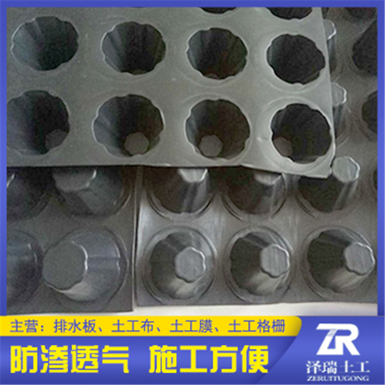 排水板阻根板疏水板型号规格, 传统的排水方式使用砖石瓦块作为导滤层、使用较多的鹅卵石或碎石作为滤水层、将水排到地点。而用排水板取代鹅卵石滤水层来排水则省时、省力又、节省资金、还能降低建筑物的荷载。详情咨询赵经理