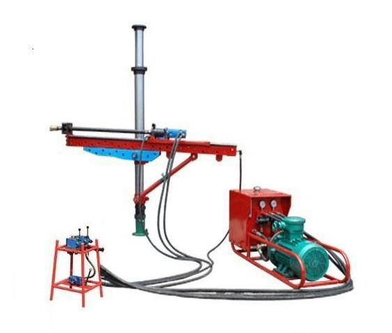该钻机的显著特点就是整机重量轻、操作简单、故障率低。自身配有支撑和固定导轨的支柱,采用顶天立地的顶紧方式,导轨和立柱之间采用了360度可调的连接盘,