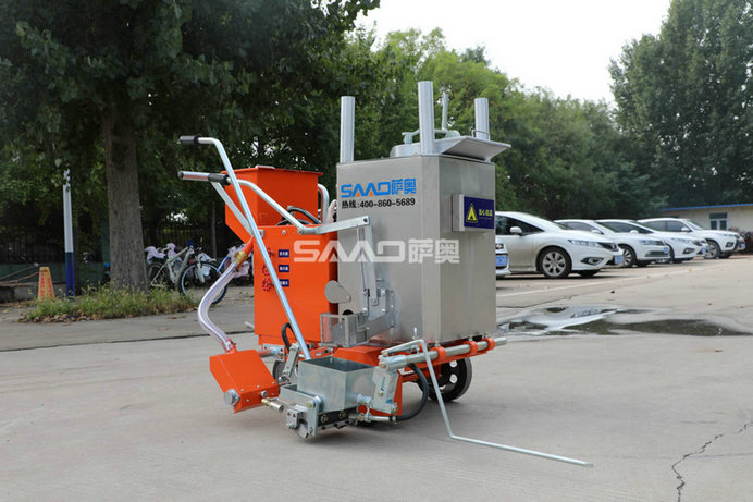 SAAO-160手推热熔划线机采用普通铸铁划线斗,同步离合玻璃微珠自动撒播器,具有结构简单、轻便、价优、性能优良等特点。