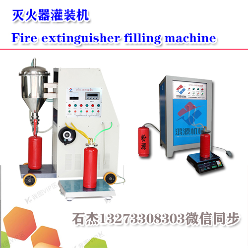 灭火器灌装设备阀体上开设有过气通道和过粉通道,过气通道和过粉通道在盲孔的内侧壁上均设有开口,且过气通道和过粉通道在阀体的表面也均设有开口;过气通道在盲孔内的开口与过粉通道在盲孔内的开口位于同一高度,且两者关于盲孔中轴线之间的夹角为九十度;当阀芯处于自由状态时,过气通道在盲孔内的开口的高度高于抽气通道的上端开口的高度,同时,抽气通道上端开口的中心与过粉通道在盲孔内开口的中心处于同一竖直面上,灌粉通道上端开口的中心与过气通道在盲孔内开口的中心处于同一竖直面上;过气通道在阀体表面的开口连接有过气软管,过气软管与抽真空设备相连接,且过气软管上安装有气压表和能够控制过气软管通断的地一电磁阀;过粉通道在阀体表面的开口连接有过粉软管,过粉软管与灌粉设备相连接,且过粉软管上安装有固体流量计和能够控制过粉软管通断的地二电磁阀。