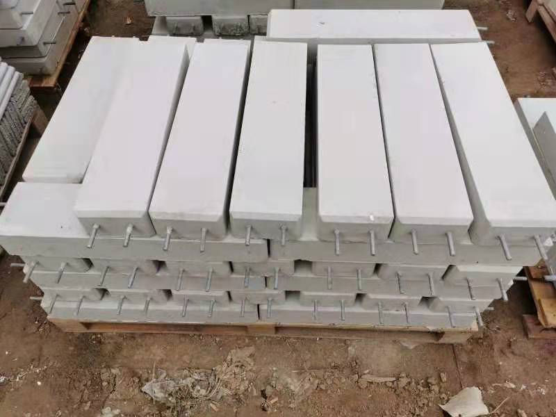 电气化预制件模具 — 铁路方向电缆盒基础模具 ,包括模板,其特征在于它还包括伸缩连杆3 ;模板包括两块主板1与两块辅板2 ;主板1与辅板2间隔排布组成杯型模具主体,主板1与辅板2通过扣钉和扣孔相连接;伸缩连杆3与主板1相连接。参见图4 主板1包括主板支架101与固定在主板支架101外围的大弧形板105, 主板支架101设有数个主板连接孔102 ;大弧形板105上端左右两侧设有主板扣孔103,大弧形板105下端左右两侧设有主板扣钉104 ;参见图5 辅板2包括辅板支架202与固定在辅板支架202外围的小弧形板203,小弧形板203上端左右两侧设有辅板扣钉204,小弧形板203下端左右两侧设有辅板扣孔205 ;主板扣孔103与辅板扣钉204插接、主板扣钉104 与辅板扣孔205插接组成杯型模具主体。为了方便拆卸辅板2,小弧形板203上端设有辅板拉环201。大弧形板105与小弧形板203用铁皮制作,价格低廉,也可用不锈钢板制作。