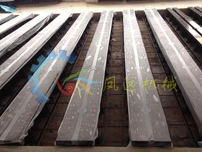 2、 铸铁地轨的的安装: 使用条形桥板,合像水平仪。先调平一根地轨,然后以其为基准,依次往下进行初调。然后水泥灌浆,待水泥浆凝固后,进行精调检验。