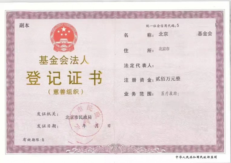 ①公益基金会的人员要求:理事长--副理事--秘书长--理事等相关人员7-25人,其中人员需要4人以上是北京户籍