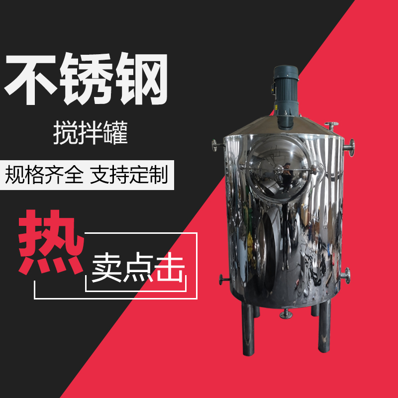 另外,还配有温度控制装置、测温孔、CIP自动旋转喷洗球、消泡器、挡板、空气分布器、温度传感器、视镜射灯、液位计等设备。不绣钢搅拌罐由搅拌罐体、上下端头、搅拌器、支承、传动装置、轴封装置等组成,还可根据工艺要求配置加热装置或冷却装置。不绣钢搅拌罐和搅拌罐盖可以是法兰或焊接的。根据工艺要求,搅拌罐罐盖可用于打开进料,排料,观察,温度测量,压力测量,蒸汽分馏,排气和其他工艺管孔。电动机放置在不绣钢搅拌器盖的上部,搅拌罐中的搅拌器由驱动轴驱动。轴封可以是各种形式,例如机械密封或填料,迷宫式密封等。搅拌器可以以各种形式配置,例如锚式,框式,斜叶桨式和三叶桨等。