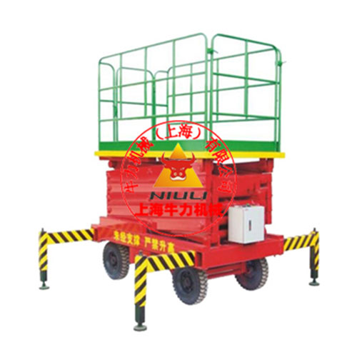 上海牛力机械SJY系列移动式液压升降台广泛应用于高空安装、维修、装潢、清洁等需要移动作业的场合,亦可作为短距离搬运、平行装卸货物的工具。它的剪叉式机械结构,使升降台起升后有较高的稳定性,宽大的作业平台和较高的承载能力,使高空作业范围更大,并适合多人同时作业,使高空作业更方便、更搞笑、更安全。