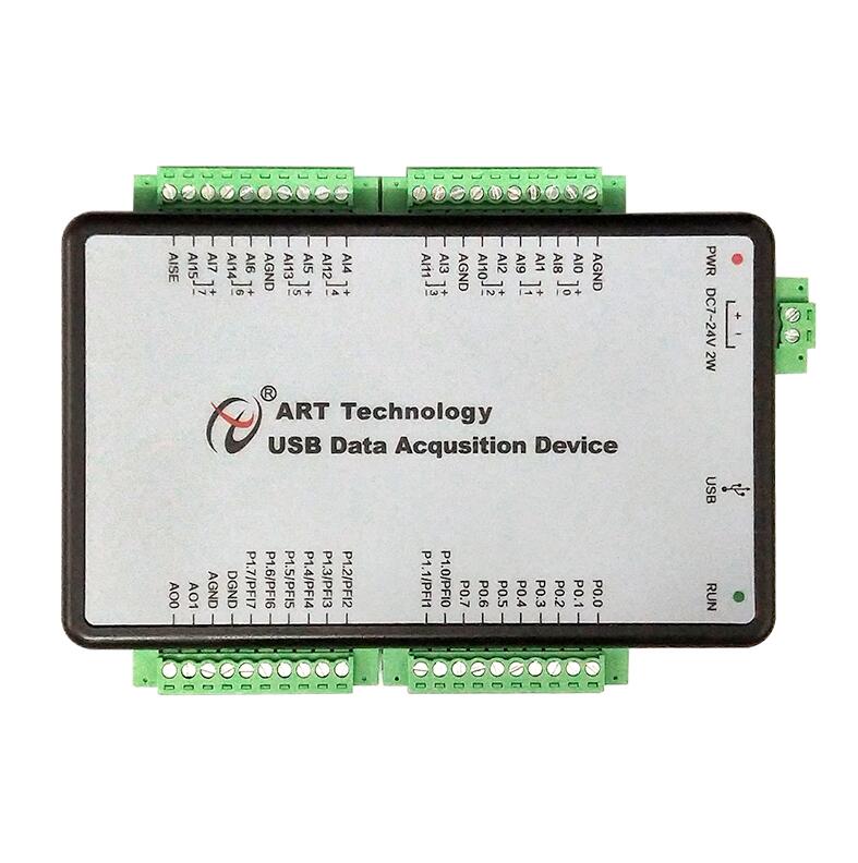 与LabVIEW无缝连接,提供图形化API函数。500Ksps 12位16 RSE / NRSE通道或8通道DIFF模拟量输入,支持按需单点采样、有限点采样、连续采样;2通道模拟量同步输出;16路可编程I/O;2路多功能计数器。