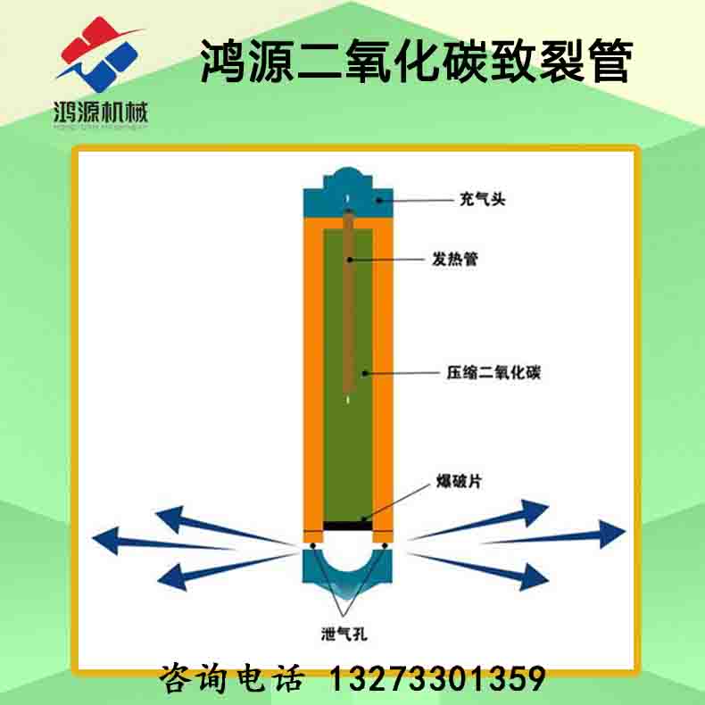 二氧化炭气体膨胀设备在高压下可转变为液态,通过高压泵将液态的二氧化炭压缩至圆柱体容器内,装入膜、破裂片、导热棒和密封圈,拧金帽即完成了致裂前的工作。将和及电源线携至致裂现场,把钻孔中固定好,连接电源。当微电流通过高导热棒时,产生高温击穿膜,将液态二氧化炭气化,急剧产生高压冲击波致泄压阀自动打开,被致裂物品或堆积物受几何*当量冲击波向外迅猛推进,从致裂至结束整个需0.4毫秒,且是低温下运行,与周围的,气体不相融合,不产生任何有害气体,不产生电弧和电火花,不受高温、高热、高湿、高寒影响。在井下致裂时对瓦斯具有稀释作用,无震荡,无粉尘。二氧化炭属于惰性气体,致裂就是体积的,物理做功而非化学反应。